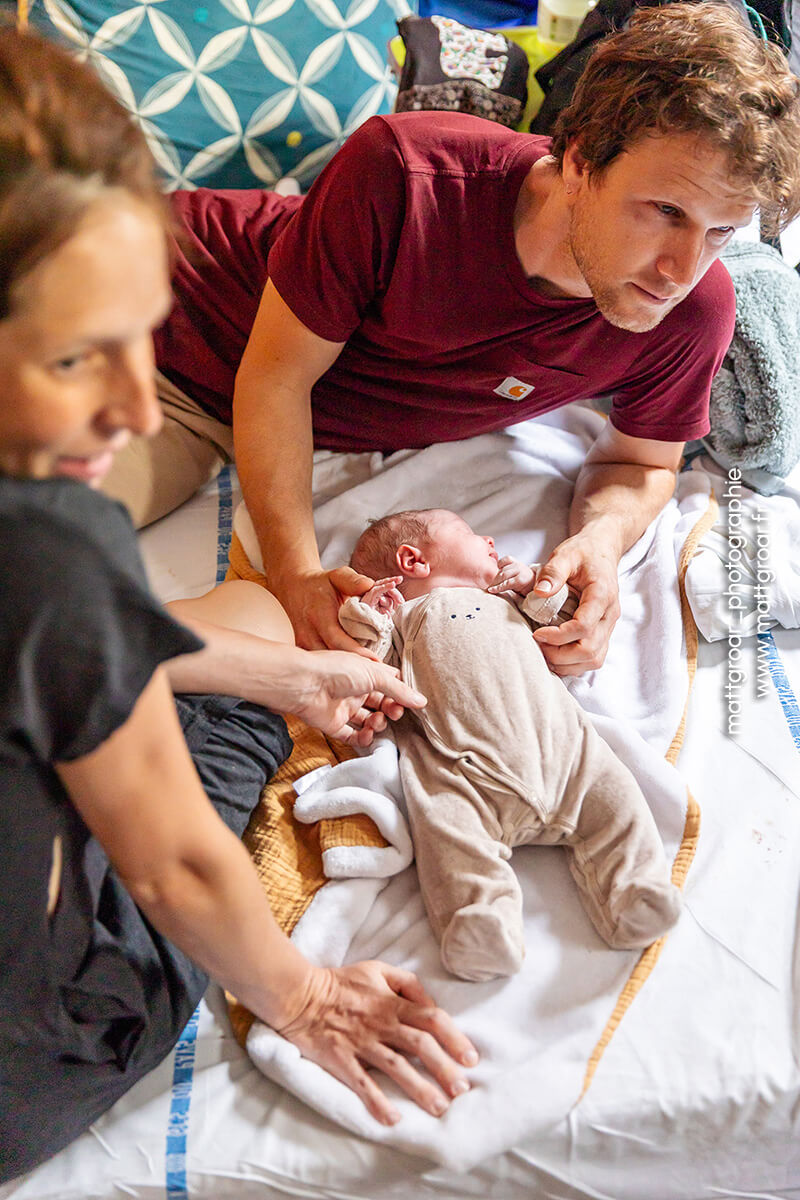 Le retour à domicile se fait quelques heures après la naissance. La sage-femme assure les premiers soins à la mère et au bébé.